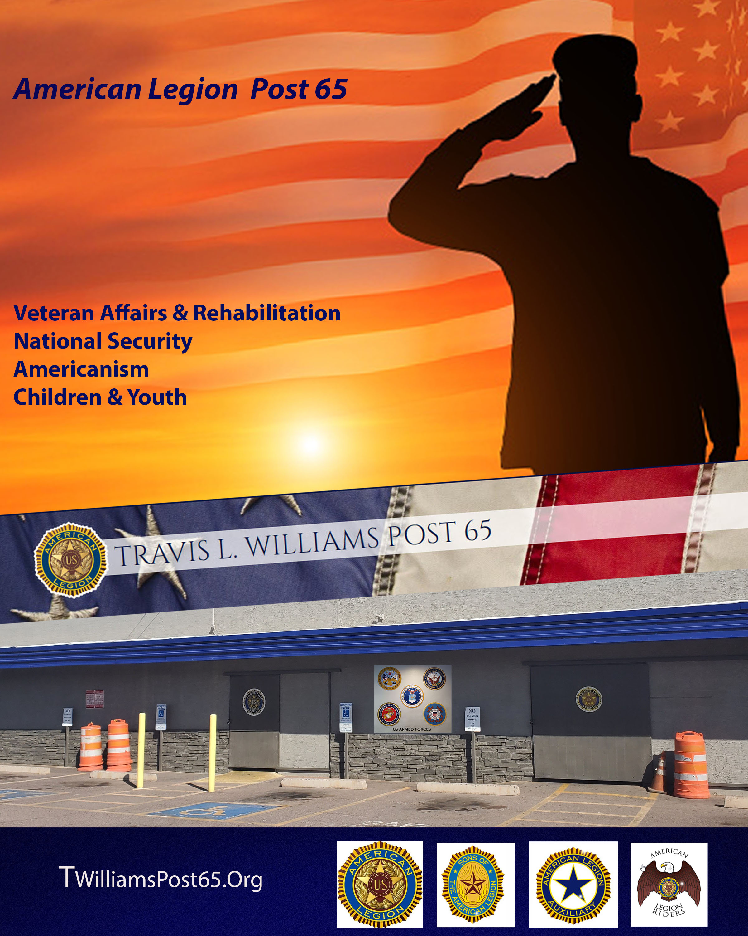 REMINDER: American Legion Post 65 is a military post established for our veterans in our community; we allow public attendance as our guests, so please be respectful and honor our rules while onsite. We value your Support and Patronage!!
